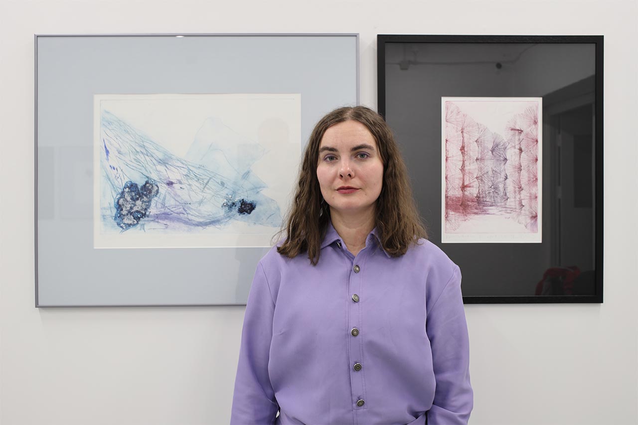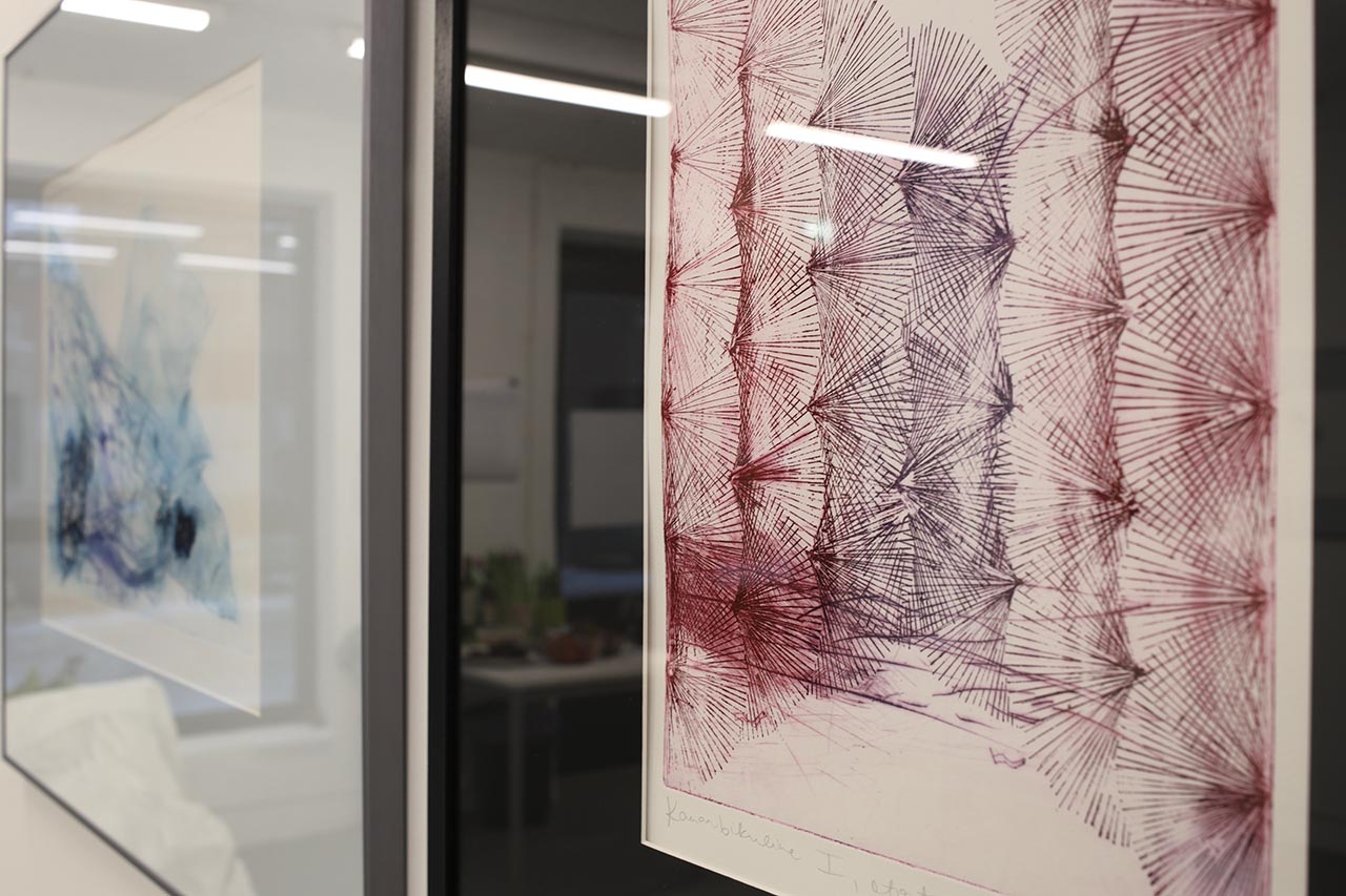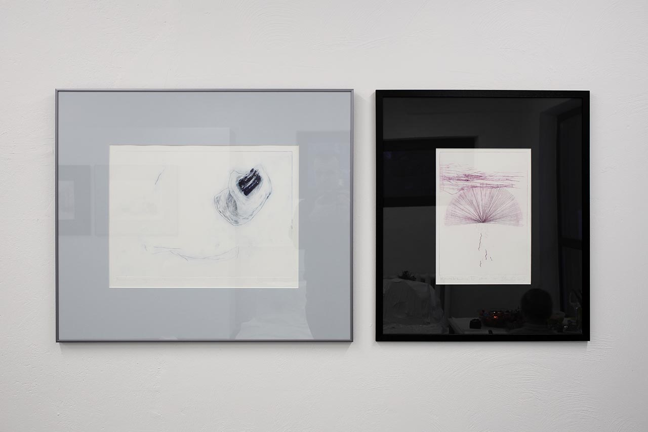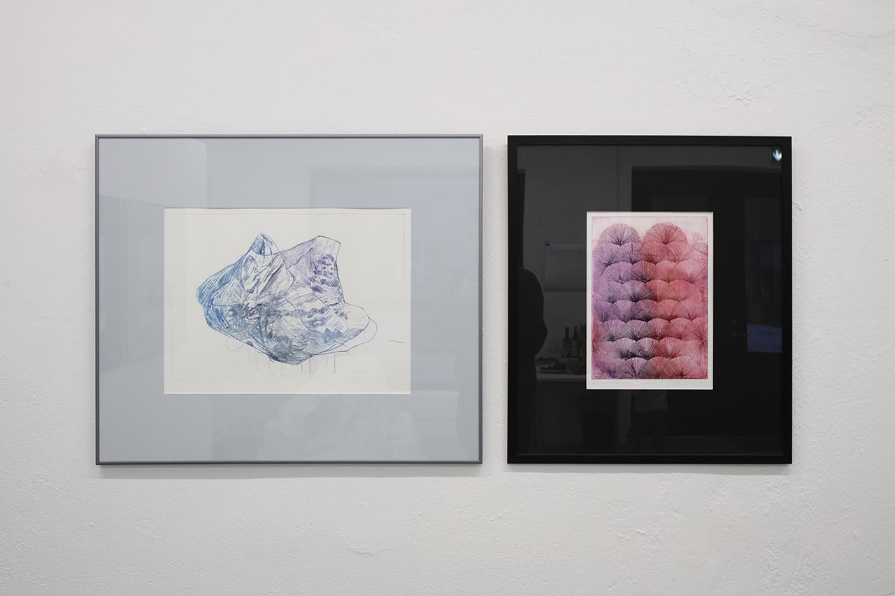 Britta Benno is exhibiting graphic works in intaglio techniques at the GÜ gallery: the four-part drypoint series “Polar Dream” forms a word pair with the etchings “Heather I-IV”.
