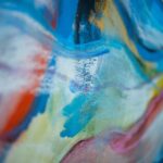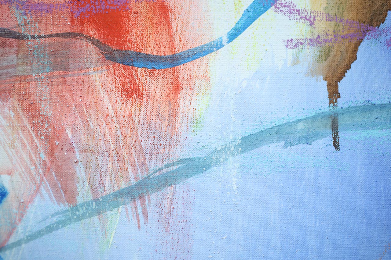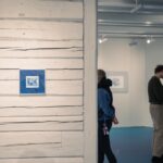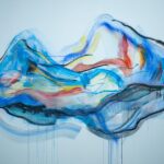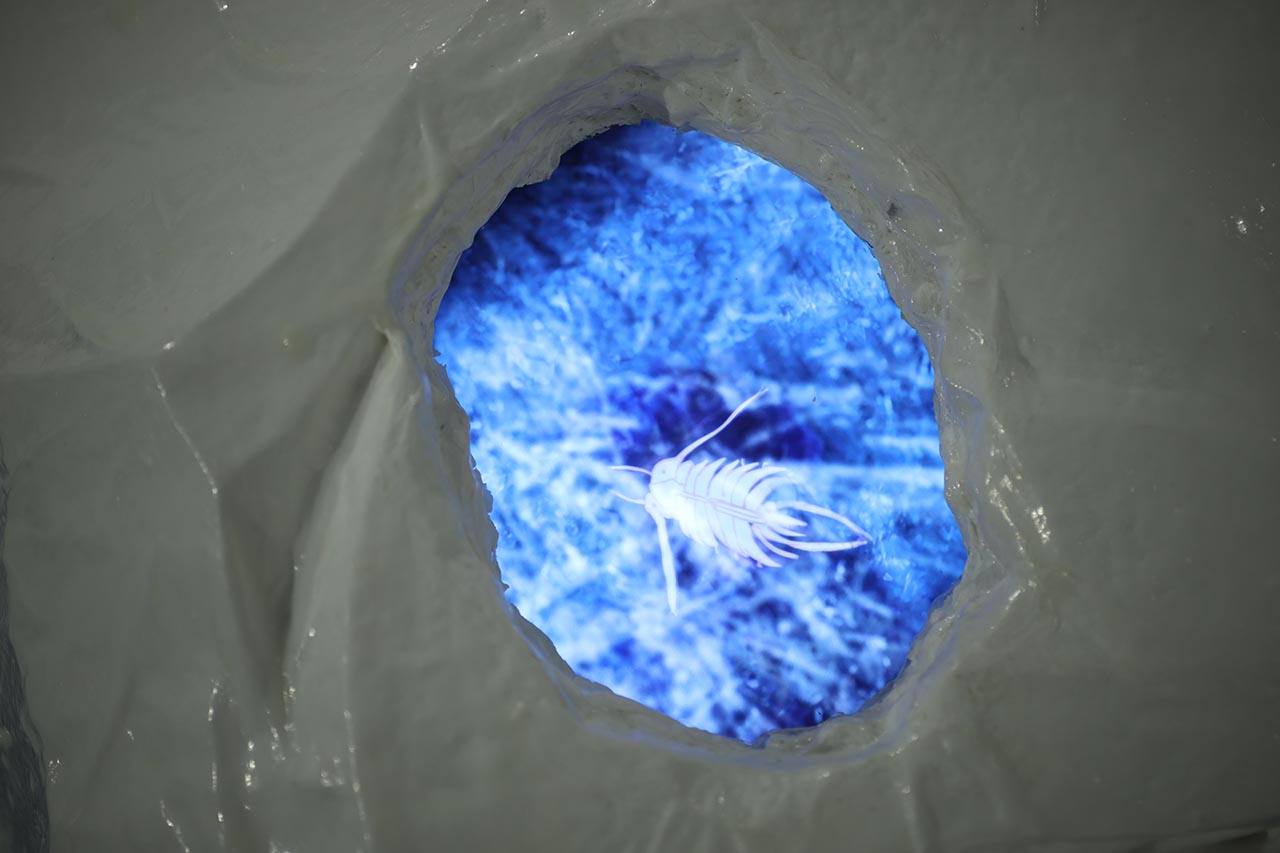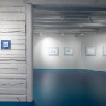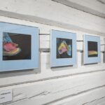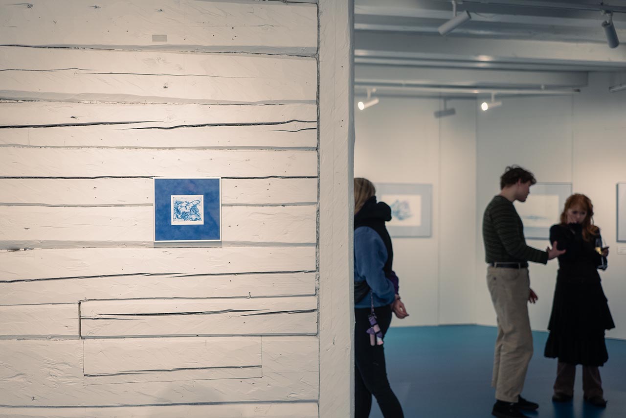 A fantastical landscape abstraction unfolds on the gallery’s white walls and polar blue floor.