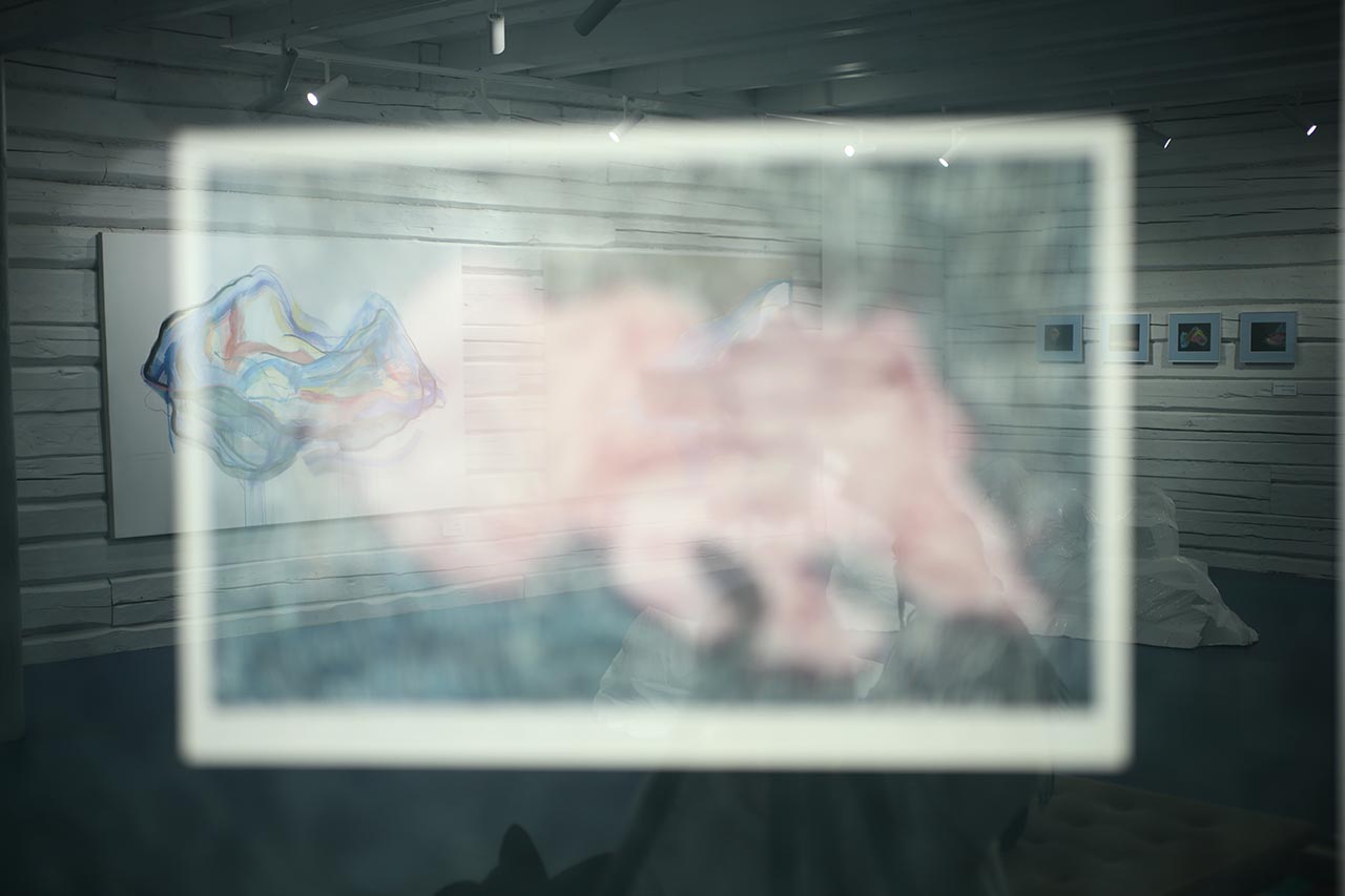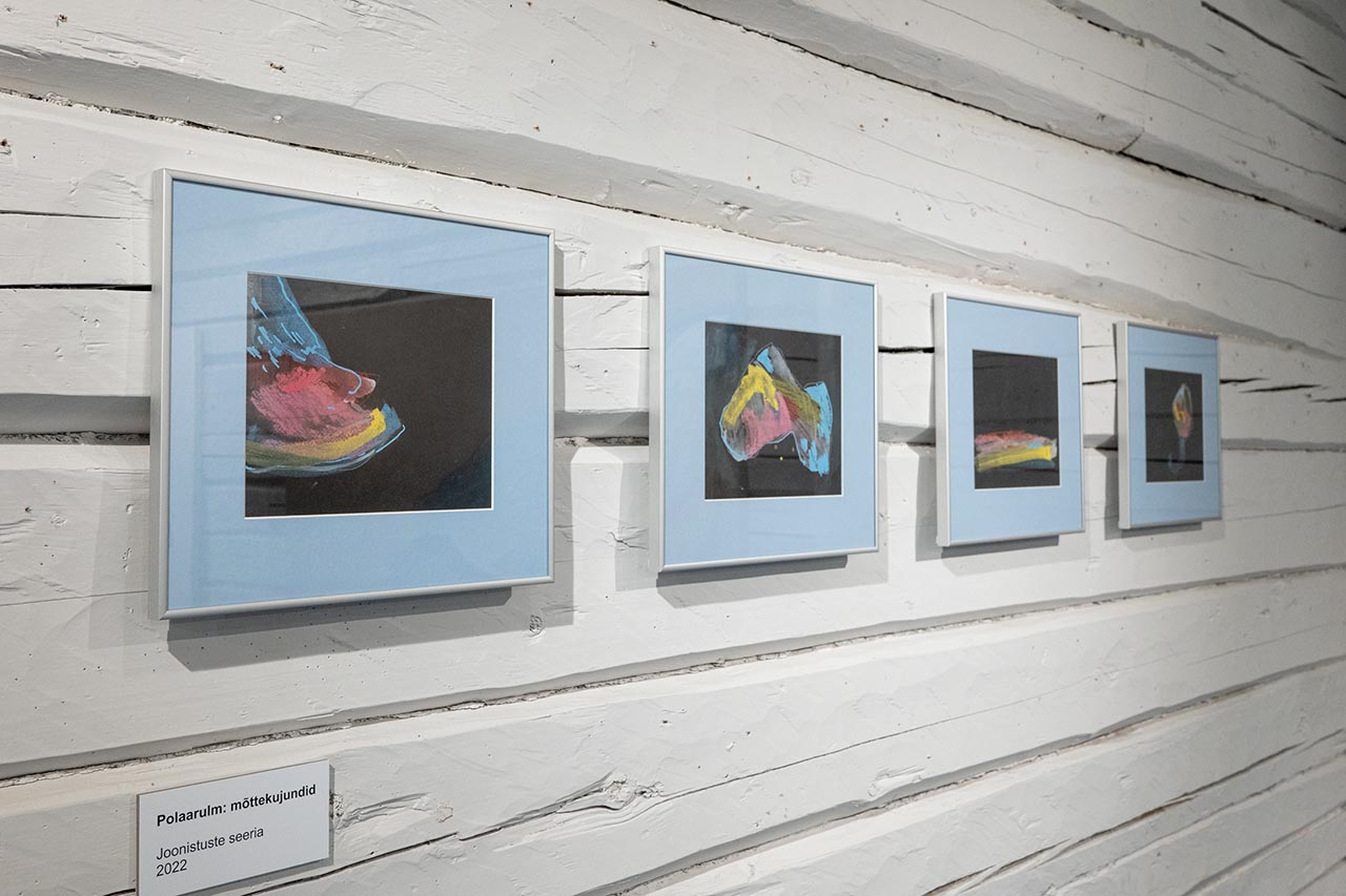 Jahedalt kumava värvipaletiga joonistused ja graafika uitab jää plastilistes vormides, kujutise avatus annab ruumi mõtisklusteks ja unistusteks. Mäed ja maastikud on elusad, mäed on inuiti keel. Põhjapoolus kuulub unistustele, olenditele ja mineraalidele, mis võbelevad kõigis maakihtides. Jää vormis meie rändrahnulise maa, mägede raskus on sirgeks triigitud maa peal rännates endiselt tajutav, lubadused on endiselt õhus. Laulvalt voolav jää ja Maa on ebakindlad muutumise vormid, mis oma pidevas saamises ei püsi kunagi paigal. Maastik muutub abstraktseks kujundiks, muutub hingavaks olendiks.