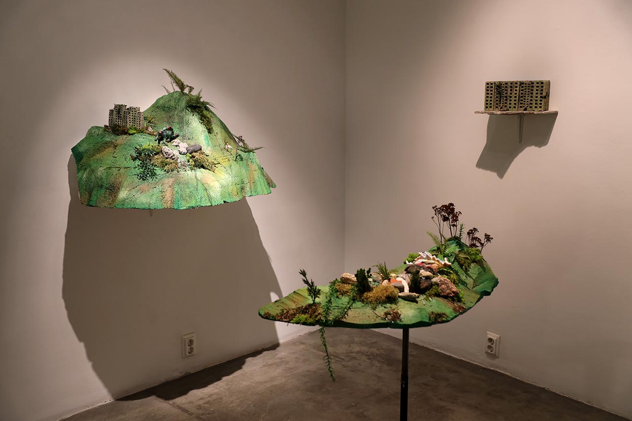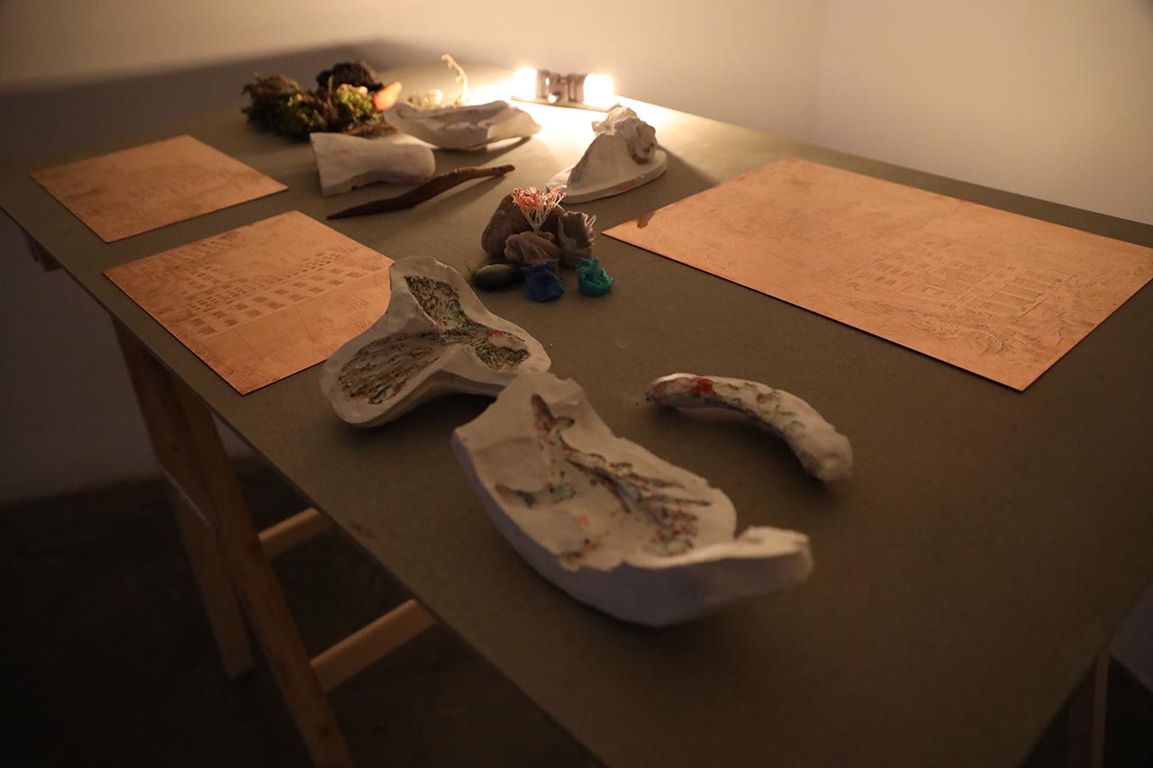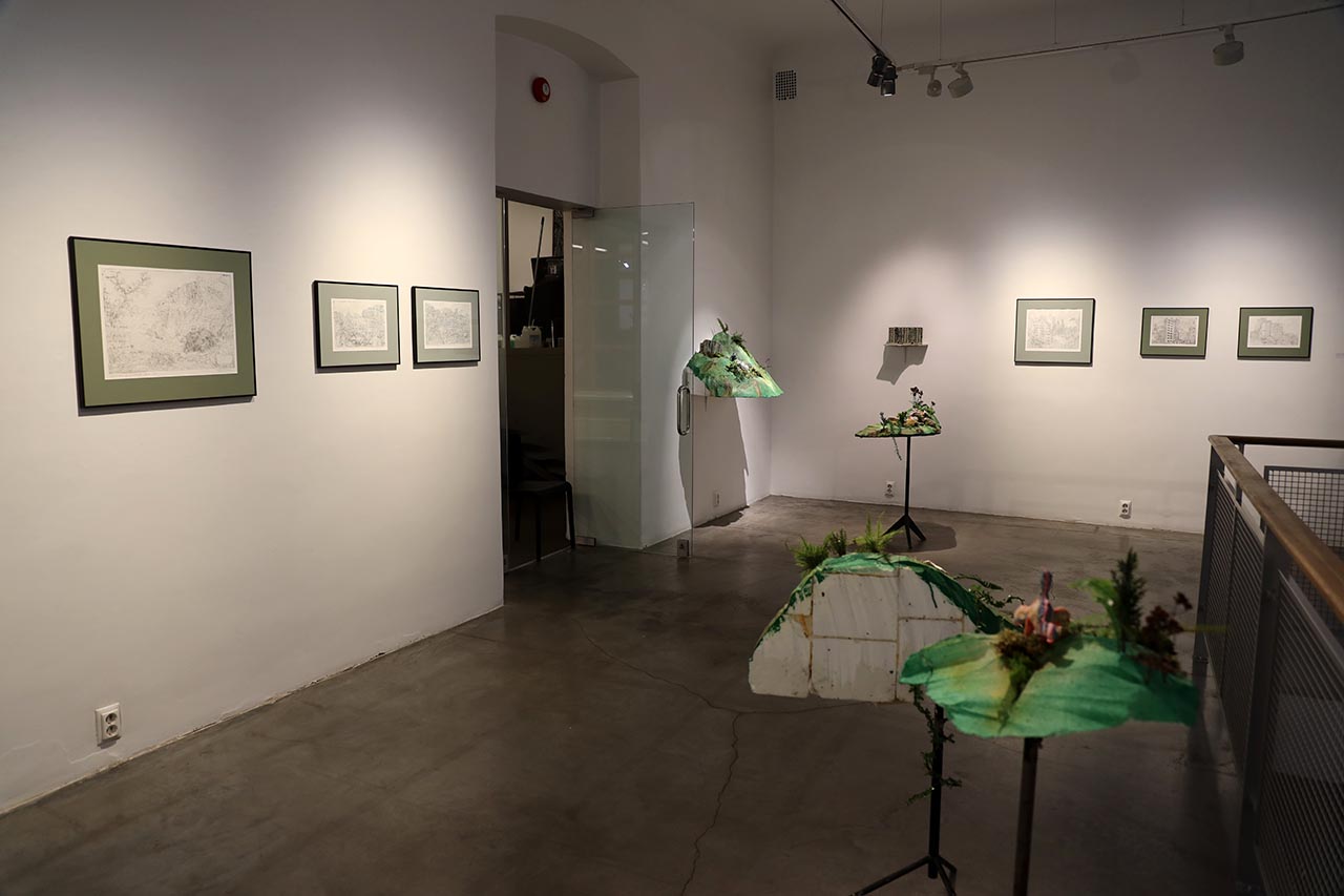Current exhibition also serves as Britta Benno’s second peer-reviewed creative output of her studies in the Doctoral School at the Estonian Academy of Arts. In her artistic research, Benno concentrates on depicting science fictional landscape in the extended field of drawing and printmaking.
