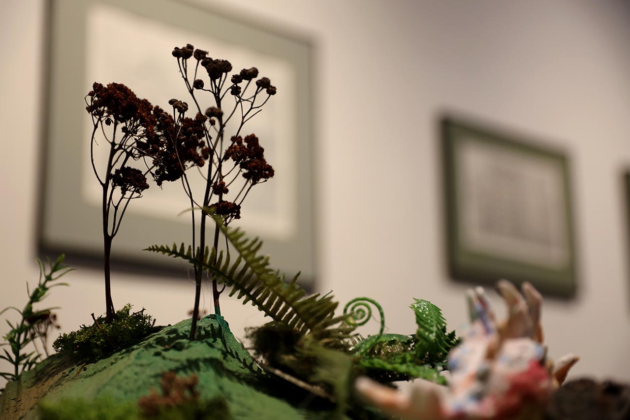 Marginal and old-time arts, printmaking and stereoscopic puppet animation accompanied by harpsichord music form a staged installation. Concern about the dystopian state of our environment motivates to imagine the post-human future. Hybrid art and layered combination becomes the tool of such imagination and depiction.