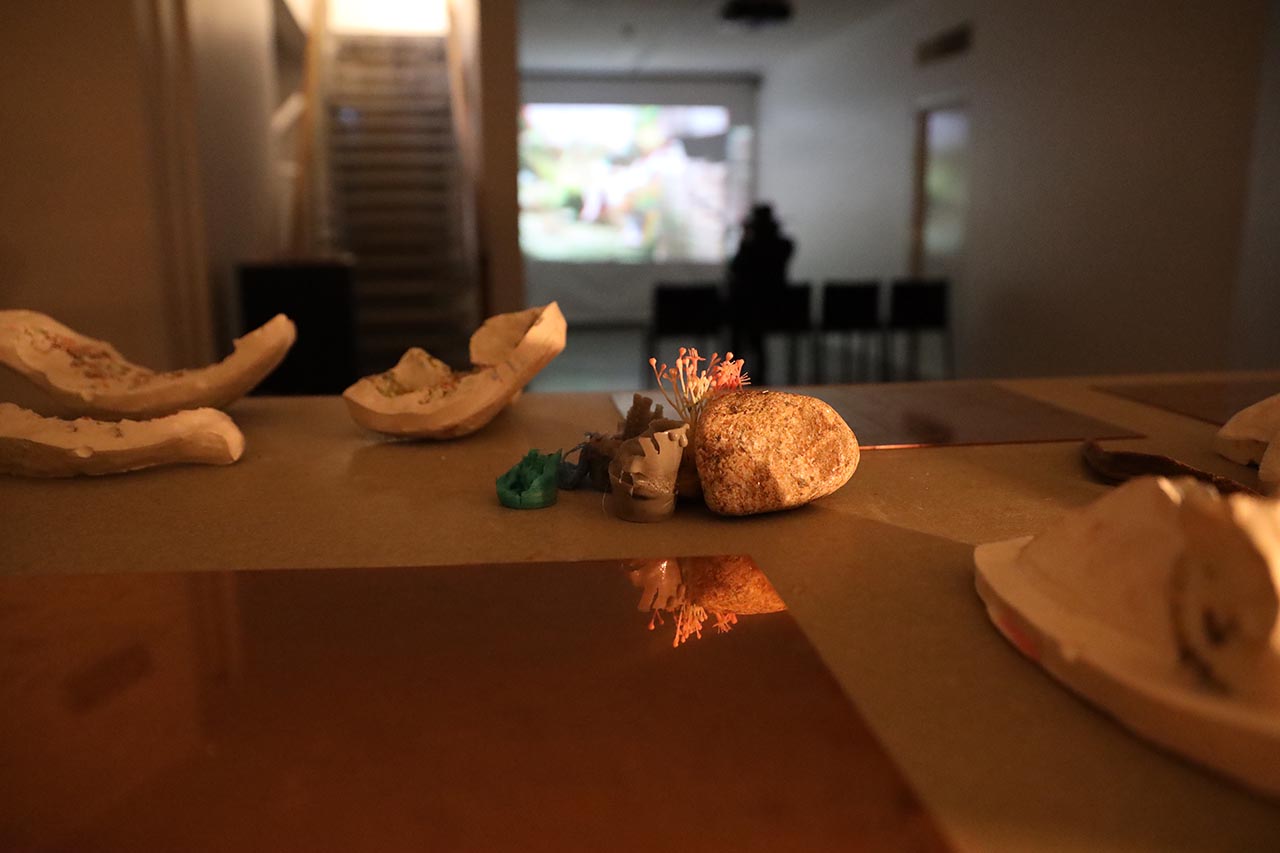 Tehniliselt aeganõudvad ja vanaaegsed kunstid, trükigraafika ning stereoskoopiline ümarnukufilm ühes klavessiinimuusikaga moodustavad installatiivse lavastuse. Mure keskkonna düstoopilise seisukorra pärast ajendab kujutlema inimesejärgset tulevikku. Kunstide hübriid ja kihiliselt kombineerimine saab kujutlemise/kujutamise tööriistaks.